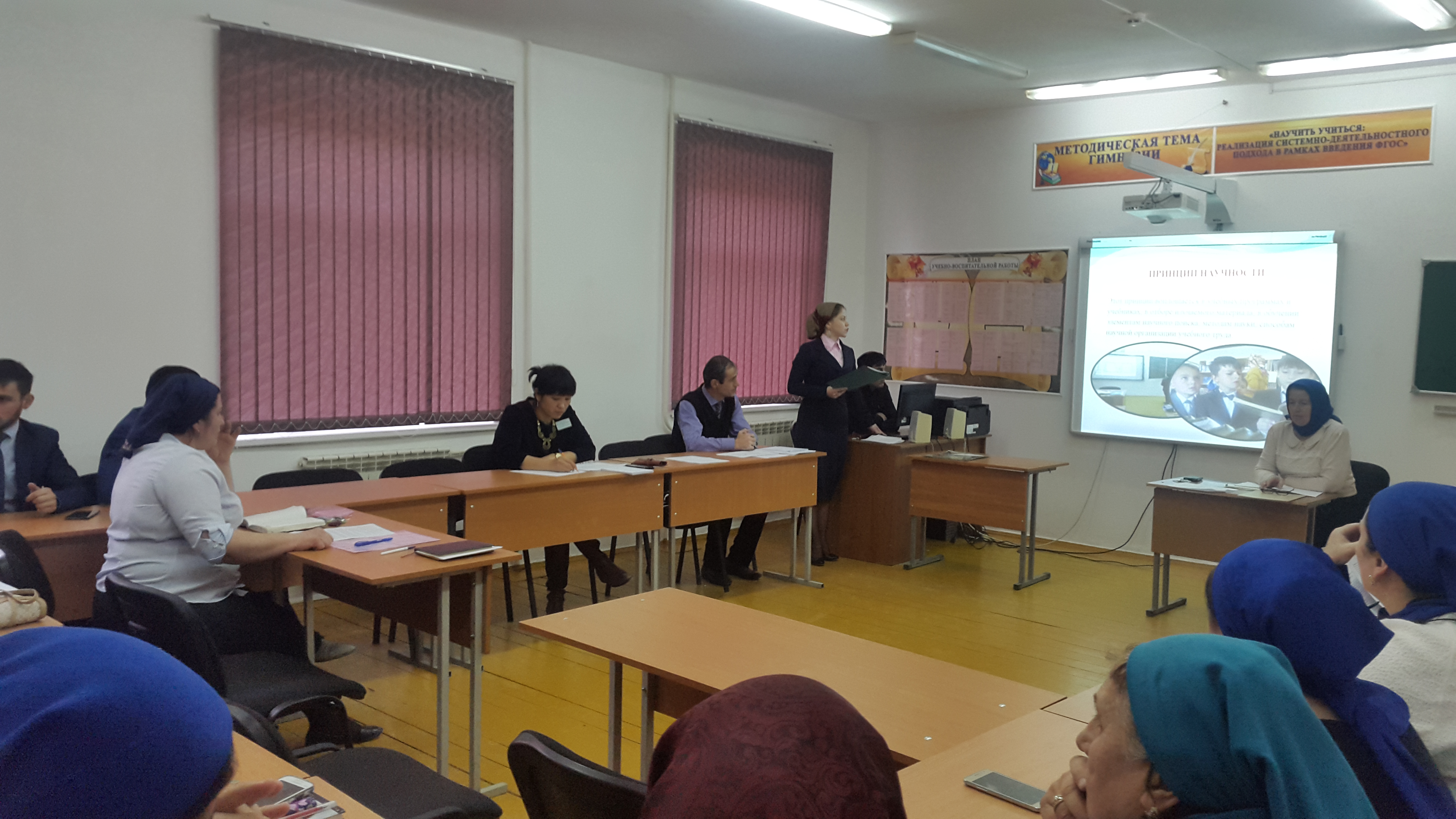 Нельзя не отметить, что образовательный процесс строится на принципах дидактики . Это тоже было отражено в работе семинара. Заместитель директора по ИКТ Р.С.Душулова подготовила для коллег презентацию «Принципы дидактики» и приложение-практикум «Способы реализации принципов обучения». В работе семинара приняли участие администрация и преподаватели МБОУ «Гимназия №8», Руководитель ИМО РУО с.Ножай-Юрт З.М.Саидова.