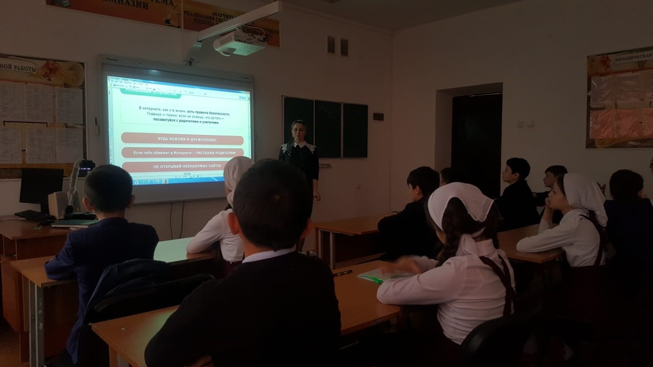 з/д по ИКТ, учитель информатики - Душулова Р.С., провела беседу с учащимися 8-11 классов на тему «Социальные сайты в жизни молодежи». Довела до сведения учащихся различные виды информации способные причинять вред здоровью несовершеннолетних, а также о негативных последствиях распространения такой информации в сетях Интернет и мобильной (сотовой) связи. Провела обучение детей правилам ответственного и безопасного пользования услугами Интернет и мобильной (сотовой) связью. Продемонстрировала презентацию с различными ситуациями по данной тематике.
