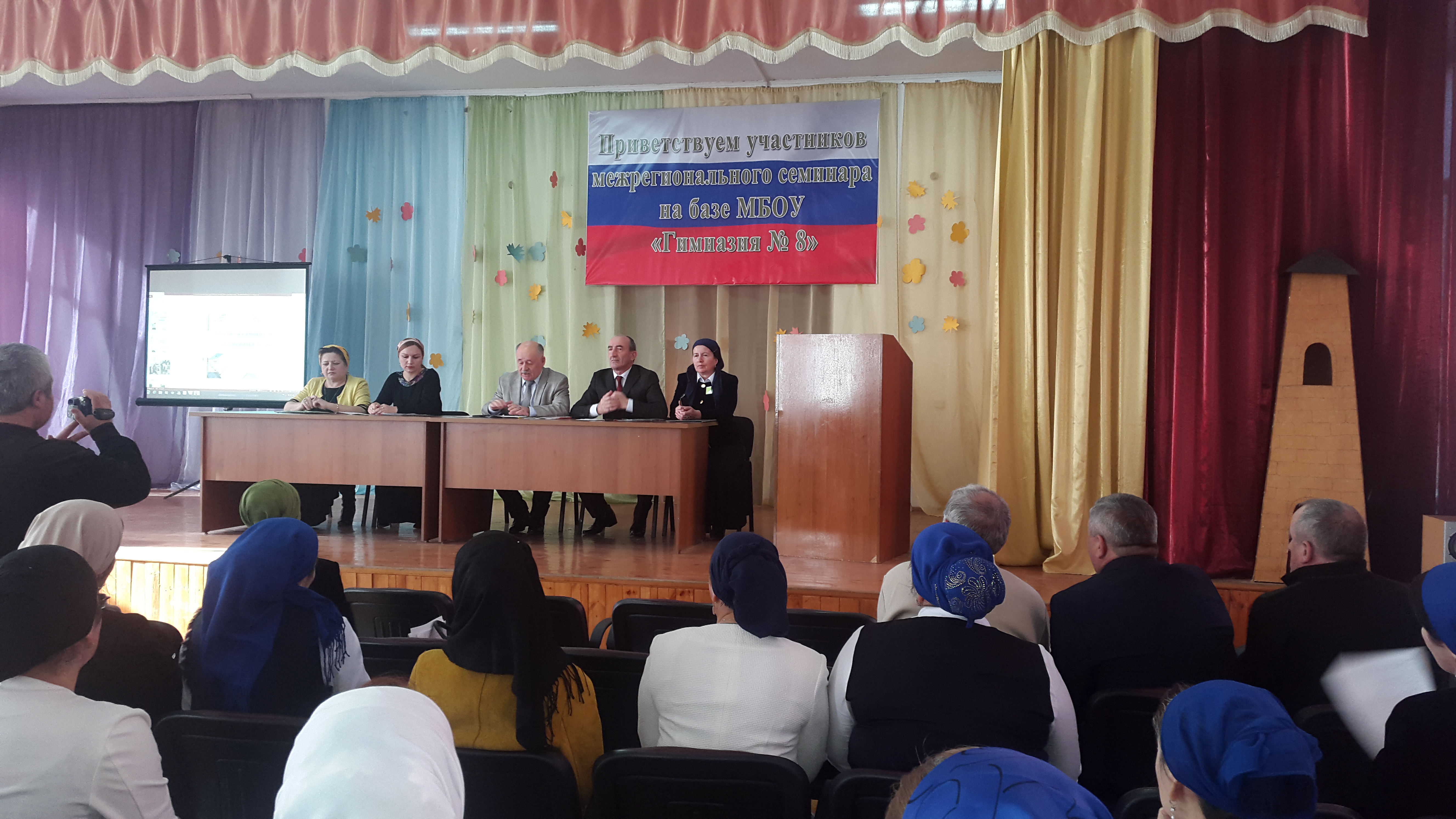 Семинар проводился в соответствии с планом работы МБОУ «Гимназии № 8» как стажировочной площадки Министерства образования и науки Чеченской Республики и по инициативе ЧИПКРОи при поддержке и активном участии МУ « Управление образования Ножай-Юртовского района» . В работе семинара , получившем статус межрегионального, присутствовали представители МОиН ЧР –советник министра Абдурахман Каимов, учителя щкол Республики Дагестан, директора и заместители директоров школ района, сотрудники ЧИПКРО-Саракаева Аза Хамзатовна и Бурсагова Мадина Вахаевна, председатель районного родительского комитета Цацаев Марзбек, родители выпускных классов (80 человек).