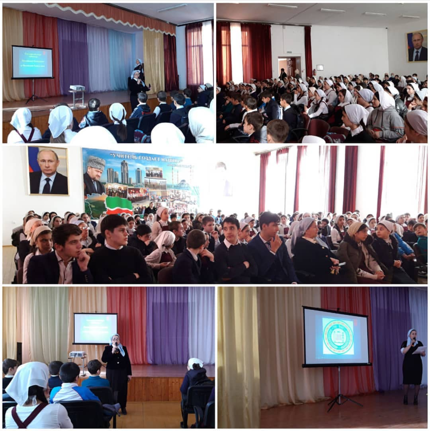 28 января 2020г. в МБОУ "Гимназия №8 им. А.А.Ахмедова" учителем истории Эдиевой М.У. для учащихся 5-11 классов проведено общегимназическое мероприятие "Государственные символы РФ и ЧР". Целью мероприятия было актуализировать знания учащихся о государственном символике, воспитывать патриотизм, гордость за свою Родину. Директор гимназии Сабуралиева Й.Т. напомнила учащимся, что знание государственной символики-это долг каждого гражданина страны.