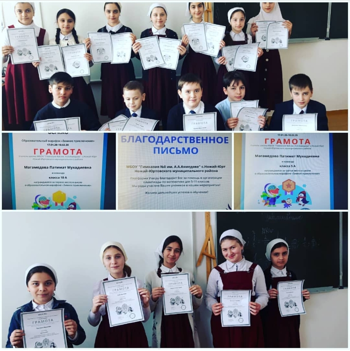 10 февраля 2020 г.закончился марафон на платформе "Учи.ру", олимпиада "Зимнее приключение". Идет награждение победителей. Учащиеся МБОУ "Гимназия №8 им. А.А.Ахмедова" получили дипломы, сертификаты и грамоты.