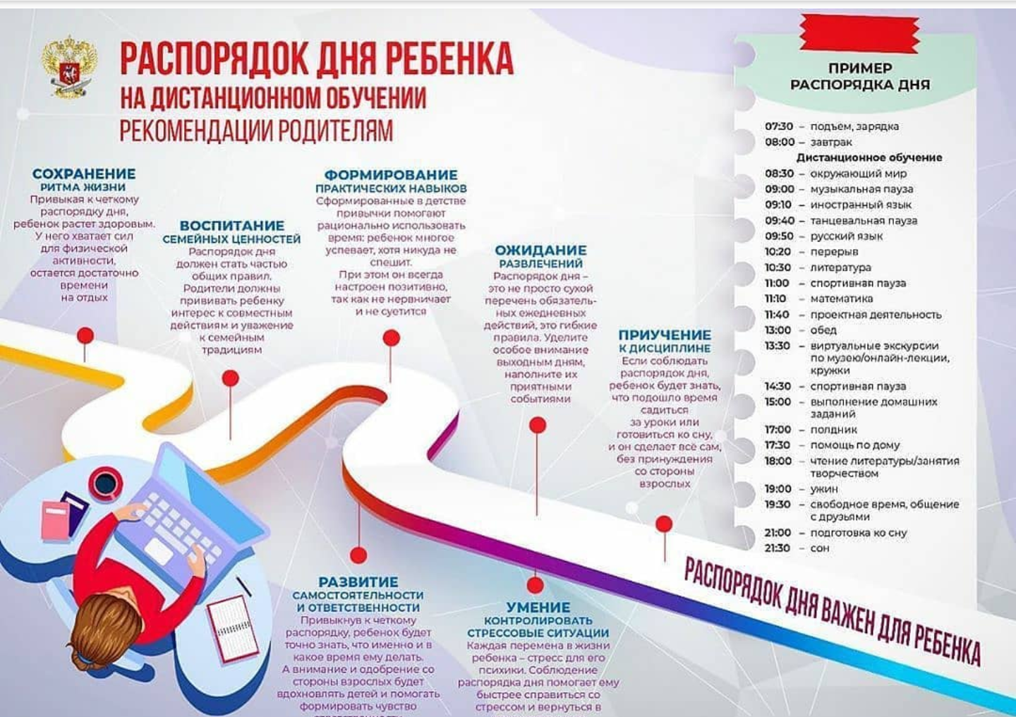 Распорядок дня ребенка на дистанционном обучении. Рекомендации родителям
