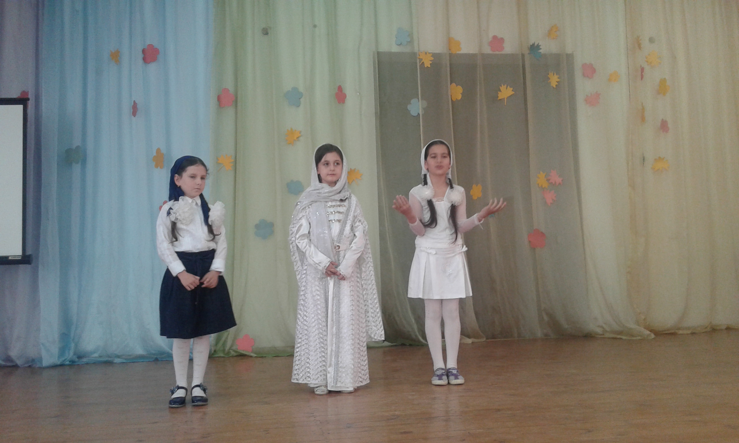 Юные участницы из 3 класса продемонстрировали свои музыкальные таланты и спели песни на чеченском языке.