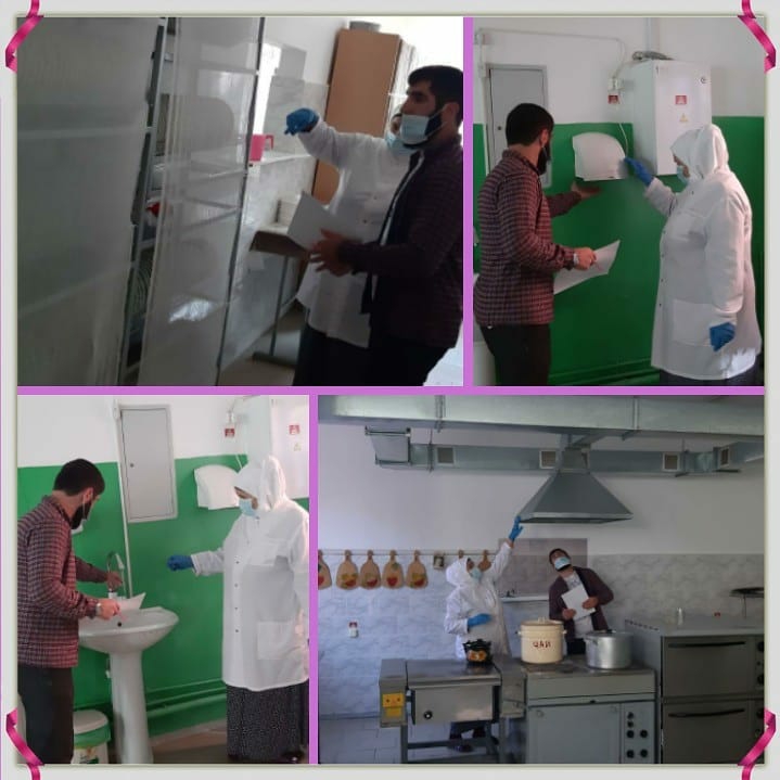 23.10.2020Сегодня 23.10.2020 г. по поручению председателя первичной профсоюзной организации Идаловой М.К. в МБОУ « Гимназия #8 им. А.А.Ахмедова с. Ножай-Юрт» уполномоченным первичной профсоюзной организации по охране труда Магомадовым Ш.А. была проведена тематическая проверка в столовой. Целью данной проверки является выявление, а потом и устранение нарушений охраны труда в столовых и кухнях школы. Для этого у проверяющего есть специальный инструктаж , основанный на требованиях СанПиН , Трудового кодекса , Роспотребнадзора и других нормативно-правовых актов. Было обращено внимание на санитарное состояние столового помещения, склада и варочной. По результатам проверки персоналу столовой были даны соответствующие рекомендации.