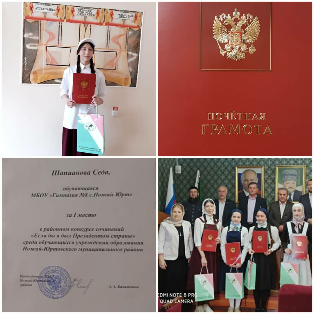 03.11.2020Сегодня, 3 ноября 2020 года в администрации Ножай-Юртовского муниципального района подвели итоги районного конкурса сочинений на тему «Если бы я был Президентом страны» среди обучающихся учреждений образования муниципалитета.В данном конкурсе, организованном и проведенном МБУ ДО «Ножай-Юртовский Дом детского творчества» @ddt_nozhay_yurt совместно с территориальной избирательной комиссией (ТИК) Ножай-Юртовского района, приняли участие и учащиеся гимназии.По итогам конкурса ученица 11 класса Шапианова Седа заняла 1 место.В мероприятии приняли участие: Глава Ножай-Юртовского района Султан Абдуллаевич Селимханов @selimkhanovsultan, заместитель Главы администрации Ножай-Юртовского муниципального района Заур Салманович Оздарбиев @zahar778109, председатель ТИК Ножай-Юртовского района Асхаб Амхадович Билимханов.