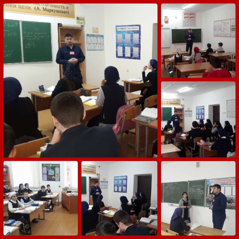 30.11.16.г. в МБОУ Гимназия №8 с Ножай-Юрт» педагогом организаторомТ-А.Б-А. Гиланиевым проведены беседы посвящённые к дню рождения Пророка Мухаммада (да благословит его Всевышний и приветствует) с участием 4-11 классов . Т-А.Б-А.Гиланиев ознакомил уч-ся с жизнедеятельностью Пророка Мухаммада (да благословит его Всевышний и приветствует) и рассказал о значении в этот священный месяц чтения салаватов.