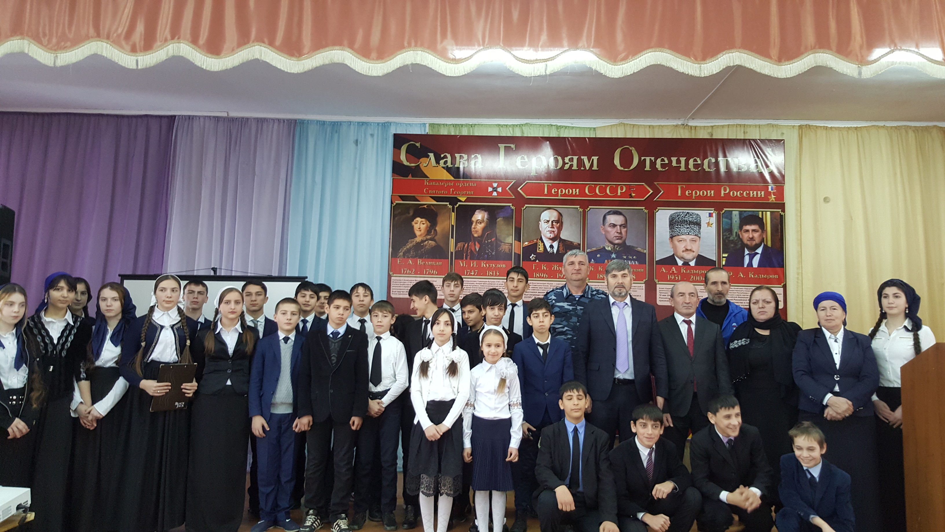 В целях патриотического, духовно-нравственного воспитания подрастающего поколения, а также привития уважительного отношения к Героям РФ и ЧР в МБОУ «Гимназия №8» районное мероприятие, посвященное Дню Героев Отечества.