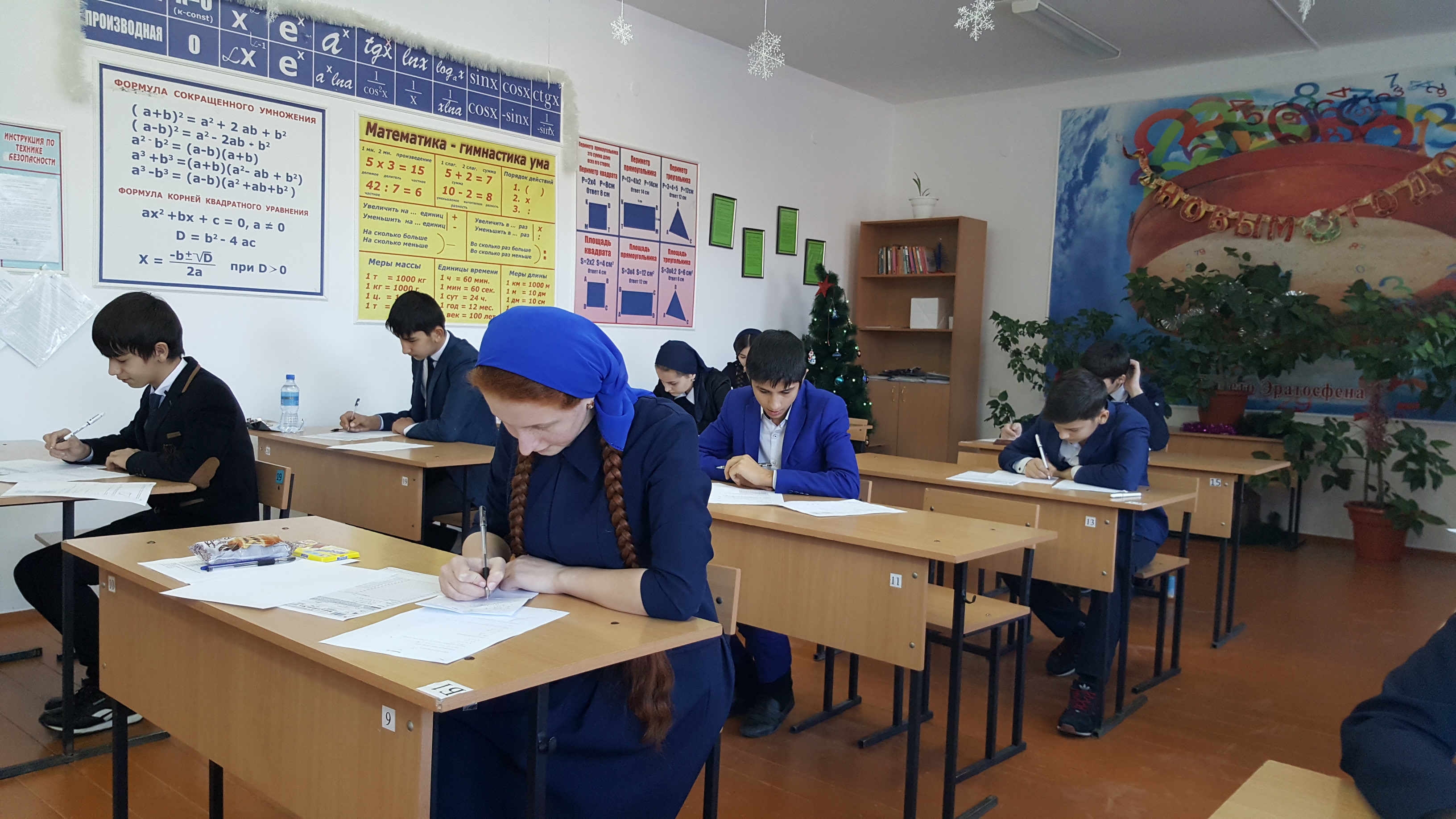 Учащиеся 9-х классов МБОУ "Гимназия №8 с.Ножай-Юрт"сдают пробные экзамены по русскому языку и математике.