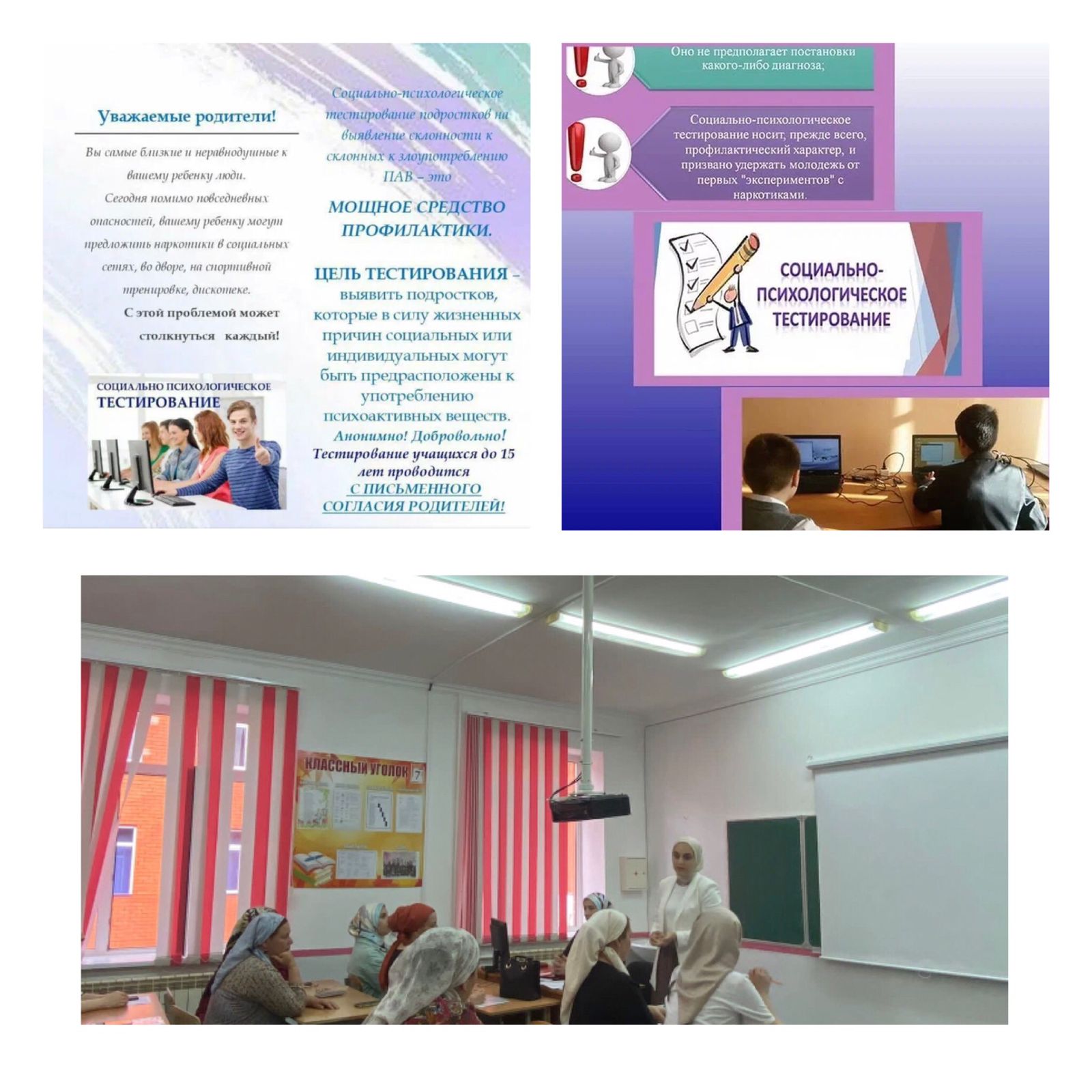 28.09.2022На основании приказа Министерства образования Российской Федерации от 20.02.2022г.√59 "О проведении социально-психологического тестирования" с обучающимися школы, и с их законными представителя (родителями), а также с педагогами школы проведена информационно-просветительская работа по проведению социально-психологического тестирования с родителями МБОУ «Гимназия 8 им. А.А. Ахмедова».