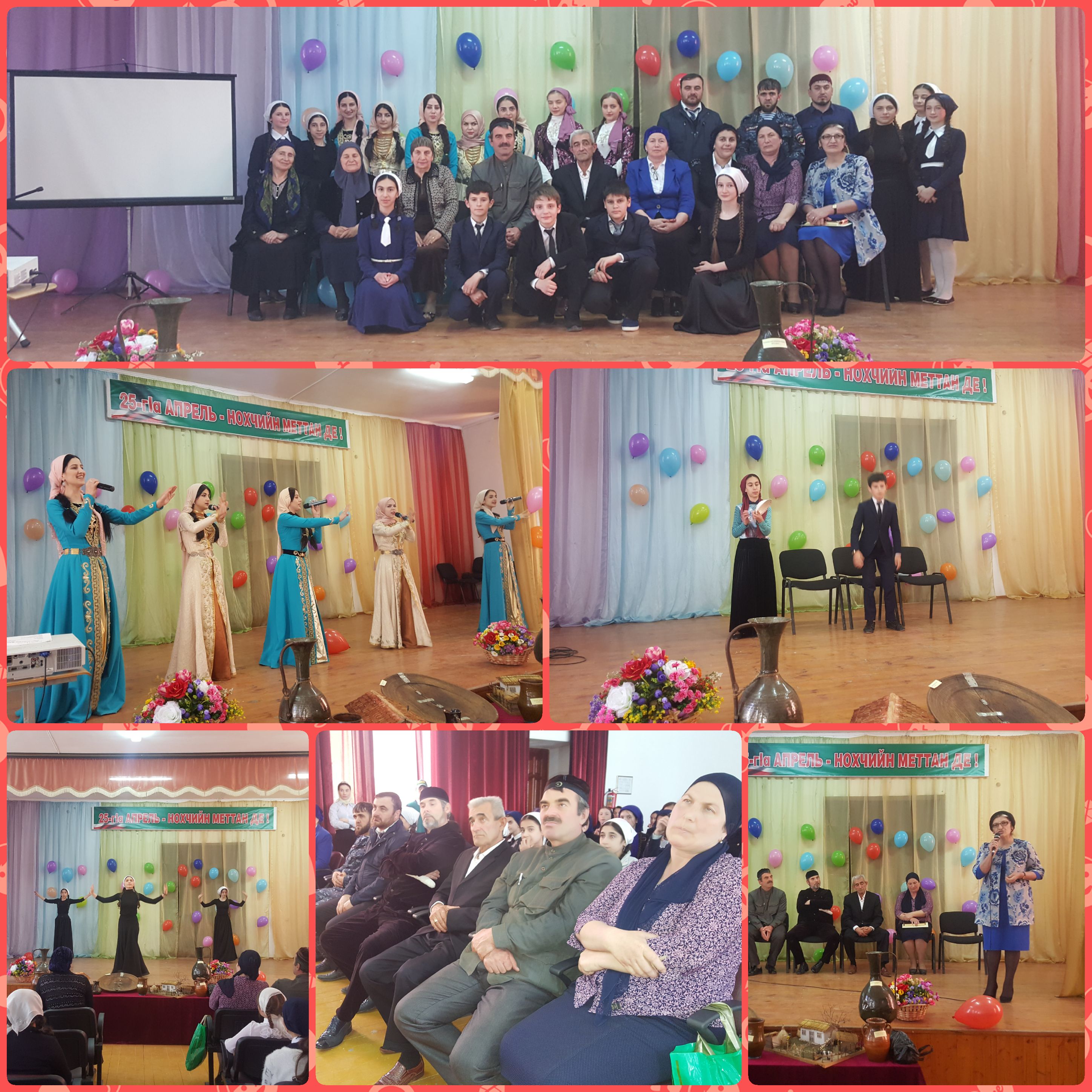 Прозвучали песни и стихи о родном крае, о чеченском языке. Вниманию гостей были представлены танцы и сценарии в исполнении учащихся 7 класса.