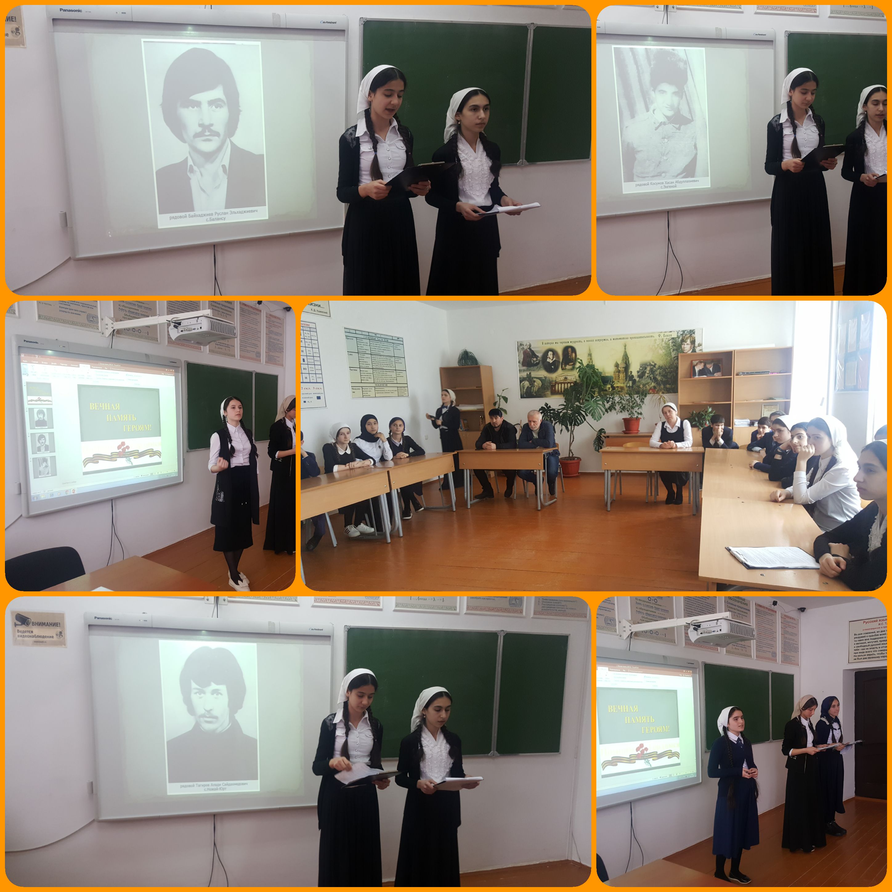 Для учащихся была показана кинохроника событий 15 февраля 1989года. Сражения кончаются, а история вечна.Ушла в историю и афганская война.Но в памяти людской ей ещё жить долго, потому что её история написана кровью солдат и слезами матерей.Почётным гостем мероприятия был старший брат воина- интернационалиста Алаша Тагирова-Юнади Тагиров.Хочется,чтобы герои афганской войны и их подвиги не были забыты сегодняшним поколением.Мы должны гордиться воинами- интернационалистами, с честью и достоинством пронёсшими это высокое звание, отдавшими свою жизнь на чужой земле.На мероприятии прозвучало много стихов и песен об афганской войне.Собравшиеся почтили память погибших минутой молчания.