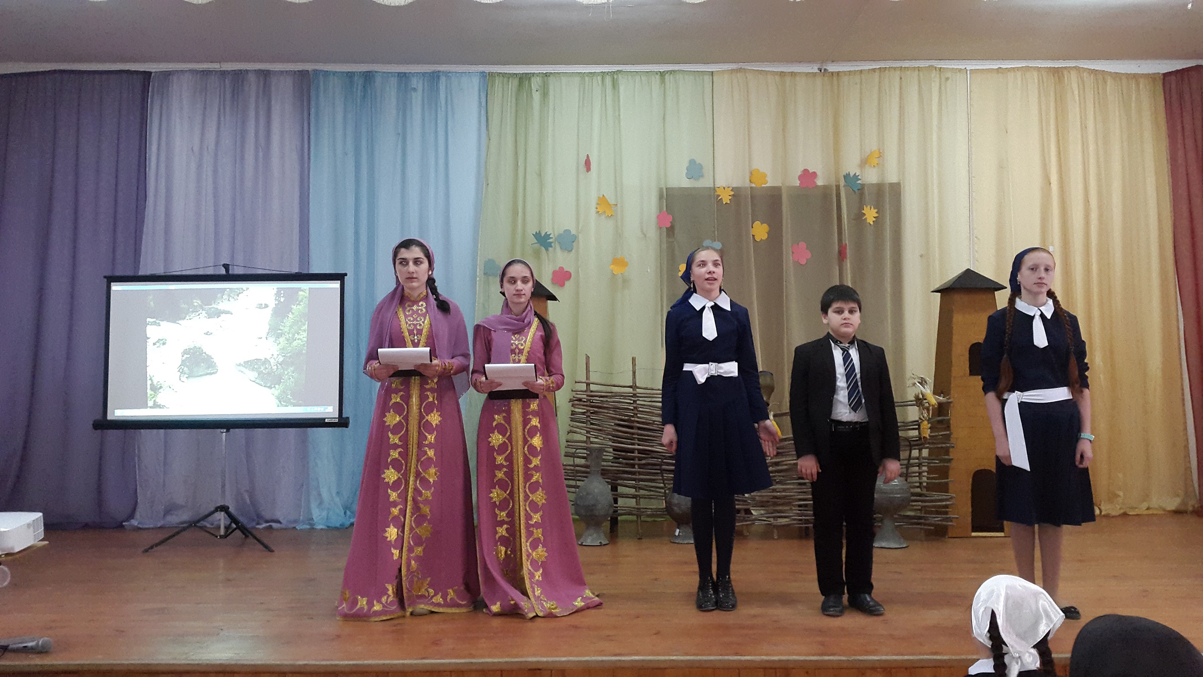Учащиеся 8б класса разыграли шуточную сценку «Пуьти яьшка».Учащиеся 5б класса разыграли сценку «Модни кхел».Чтецы читали выразительно стихи.Группа девочек из 4а класса исполнили танец.Завкафедры чеченского языка и литературы Р.З.Войсуев выразил слова благодарности организаторам и участникам данного мероприятия. Отметил активное участие отдельных учащихся в Месячнике, посвященном Дню чеченского языка. Далее завкафедрой чеченского языка и литературы Р.З.Войсуевым были награждены учащиеся грамотами. Участники и организаторы данного мероприятия сфотографировались на память.