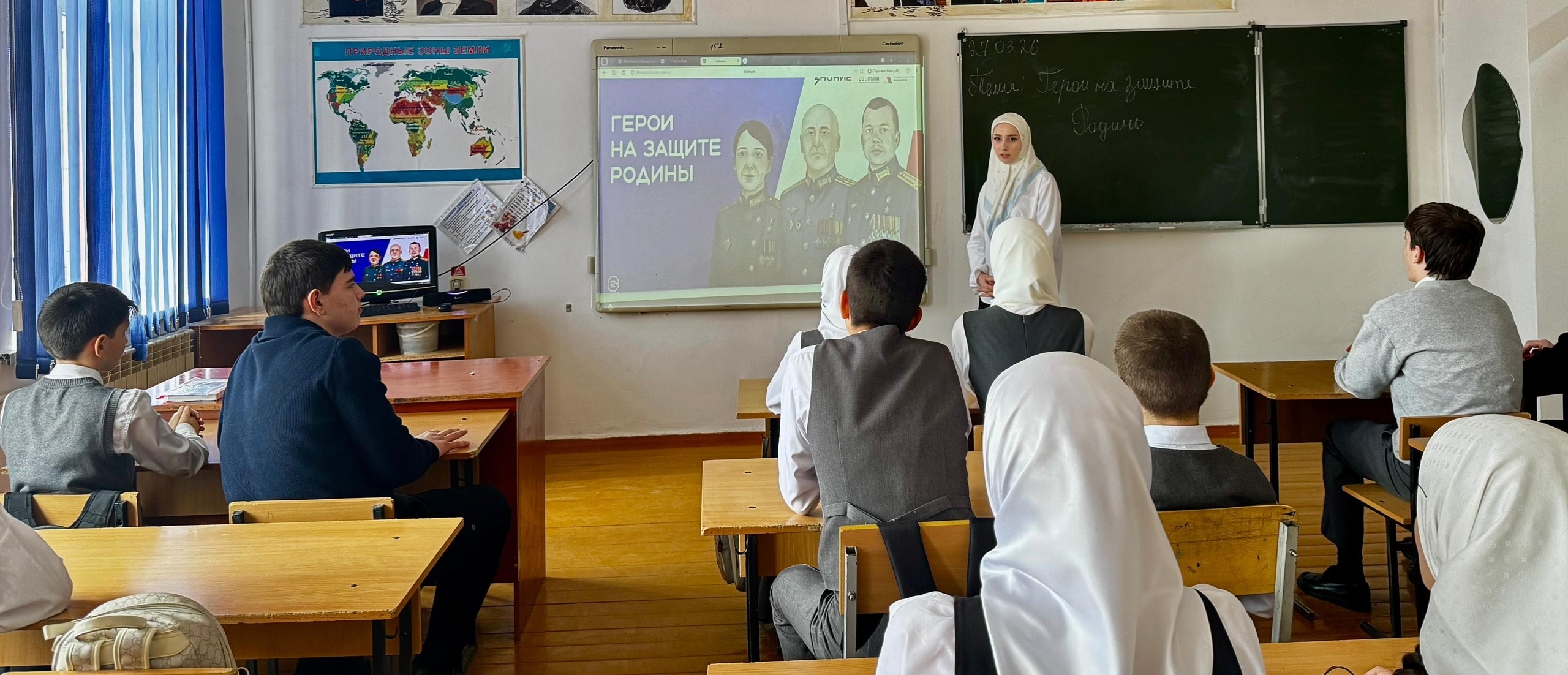 27.03.2026г. во исполнение плана мероприятий по реализации Основ государственной политики РФ в области исторического просвещения, утвержденного Указом Президента РФ от 8 мая 2024г. №314 в гимназии в 5-9 классах проведены беседы и лекции. Обучающимся была представлена презентация рассказывающая о 15 вдохновляющих историях героев специальной военной операции, которые после возвращения с фронта продолжают трудиться на благо страны.