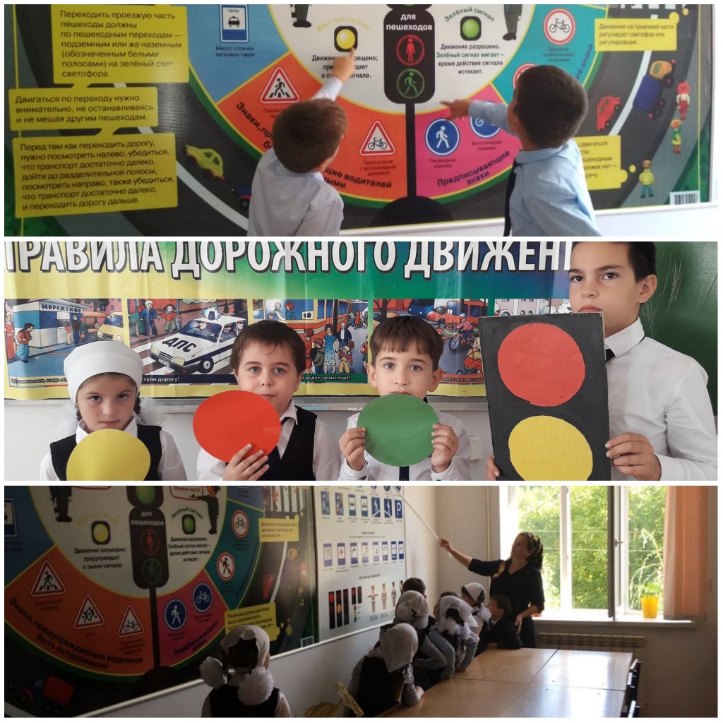 В соответствии с планами воспитательной работы классных руководителей в начальных классах (ЛечиевХ.А.-1а кл., Минкаилова Х.А.-1б кл., Джарлаева М.И.-4б кл., Чунчурова Т.Ш.-3а кл.), 10.-14.09.2018г. были проведены мероприятия по профилактике ДТП.