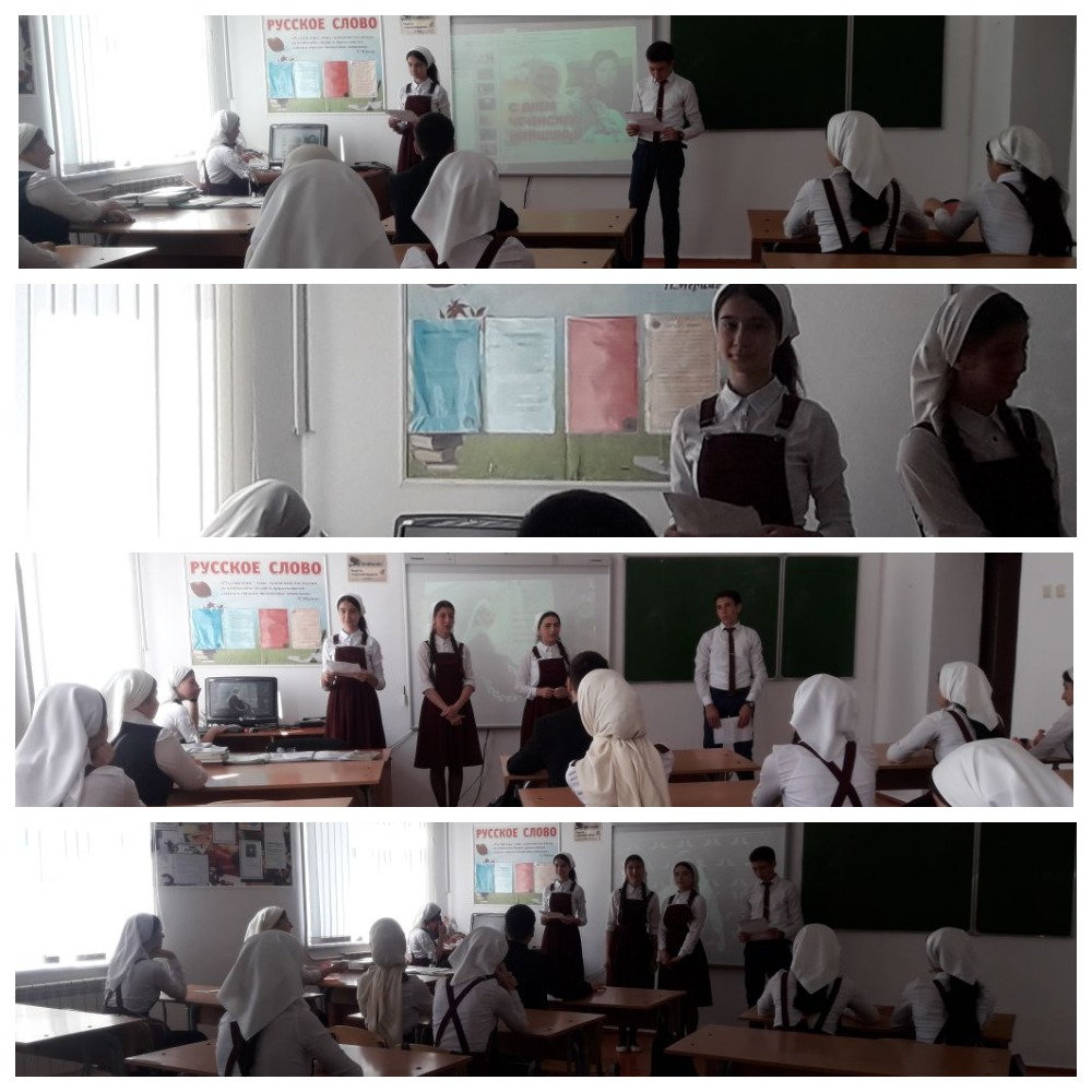 В МБОУ ,,Гимназия#8 имени А.А.Ахмедова"в 9б классе прошло мероприятие,приуроченное Дню чеченской женщины.