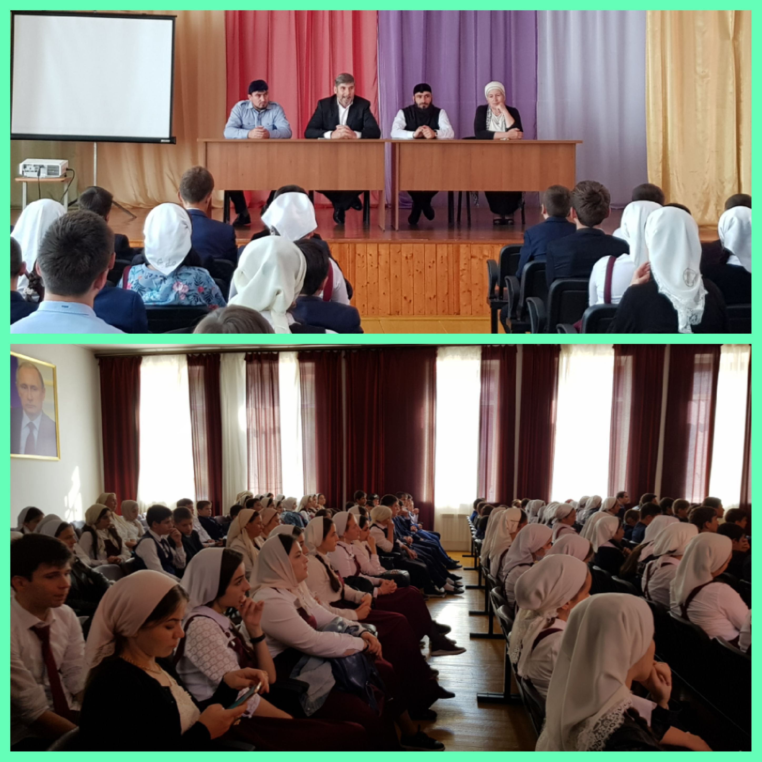 18.09.0.2018 года в МБОУ «Гимназия №8 им. А.А. Ахмедова» в целях духовно-нравственного воспитания подрастающего поколения, привития интереса к изучению и соблюдению основ Ислама среди учащихся 6-11 классов педагогом –организатором по ДНВ Т.Б.Гиланиевым совместно с представителями администрации района, заместителем главы администрации Ножай-Юртовского муниципального района Исмаиловым А.У., имамом Ножай-Юртовского муниципального района Магомадовым Вахой Бекаевичем и председателем совета старейшин района Зайпуллаевым Умарсолтой проведена разъяснительная работа по правильному толкованию смысла традиционного ислама, суфизма и тариката.